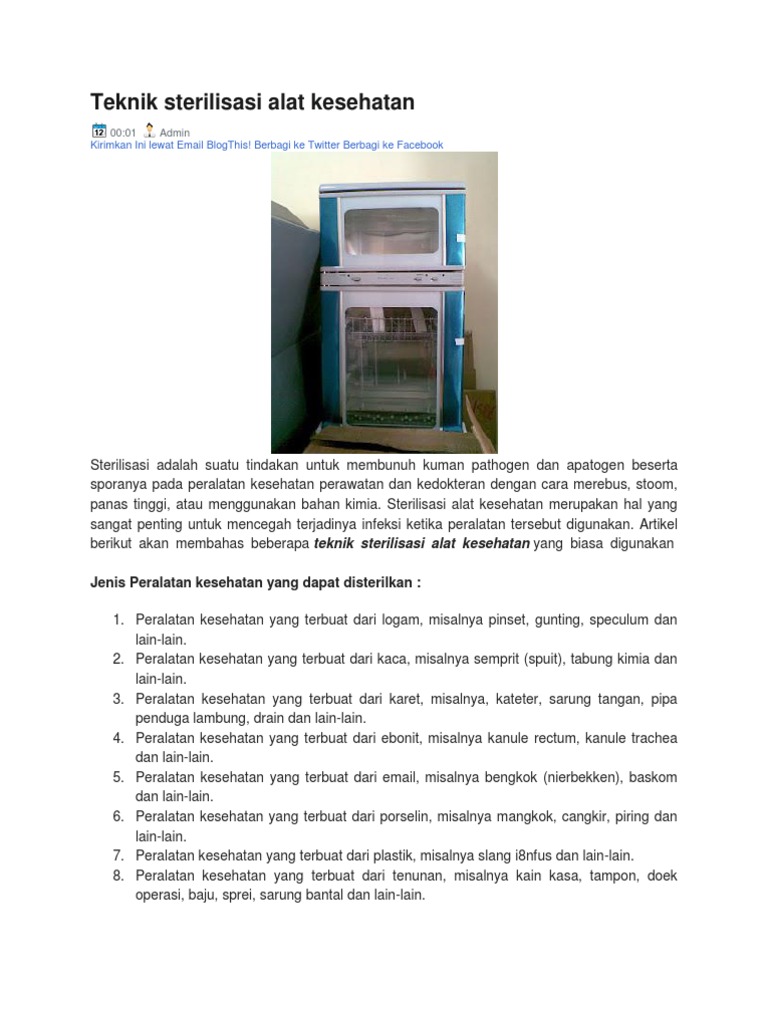 Makalah Sterilisasi Alat Kesehatan Di Bpm | Download Gambar