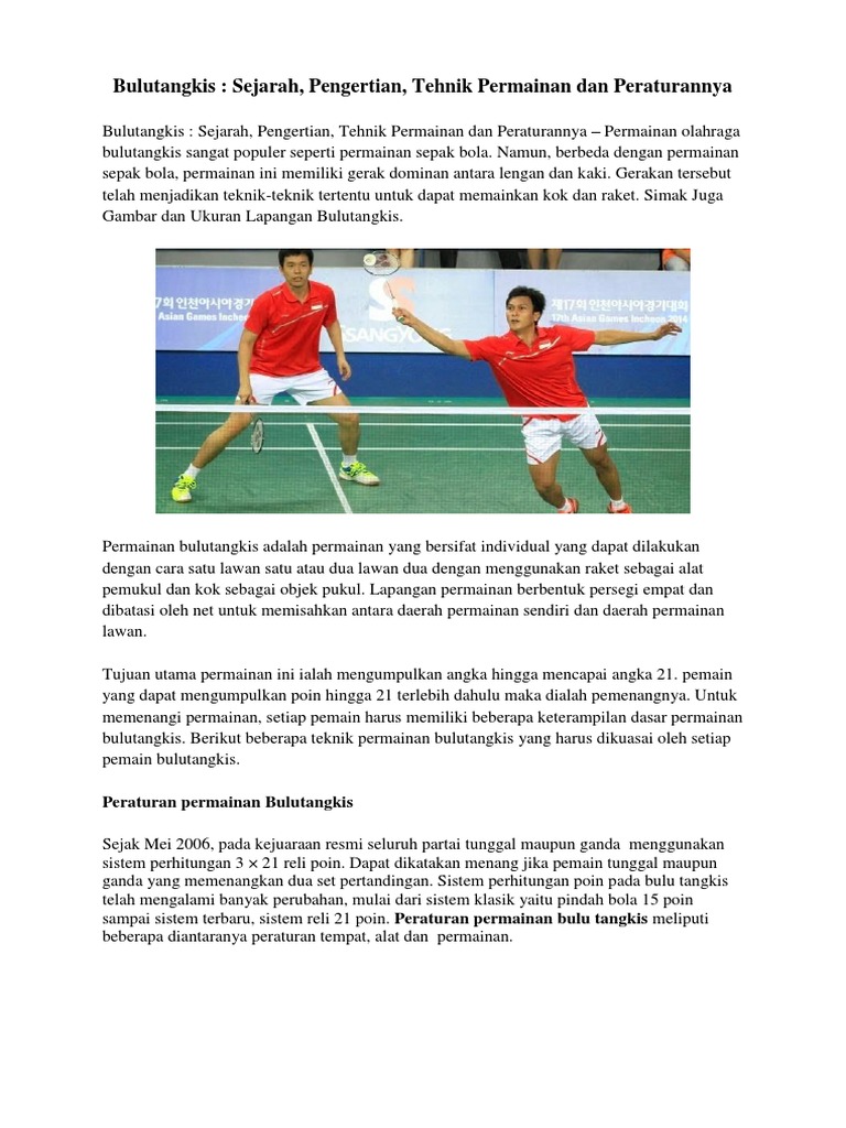 Olah Raga Bulu Tangkis Cara Memainkan Dan Alat Alatnya | Download Gambar