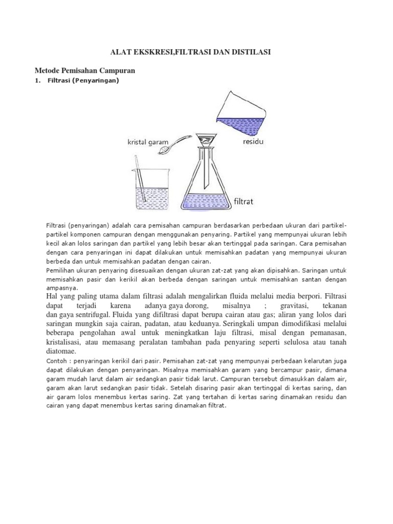 Pemisahan Campuran 1 Filtrasi Penyaringan 2 Destilasi Pdf | Download Gambar
