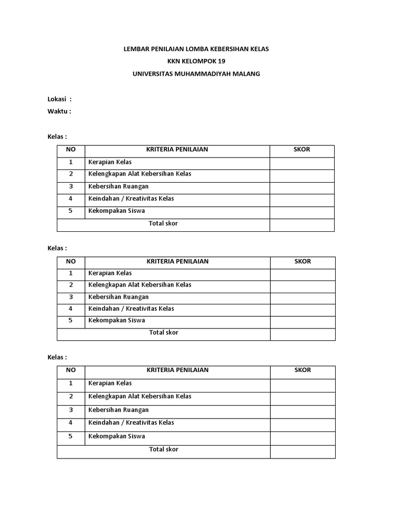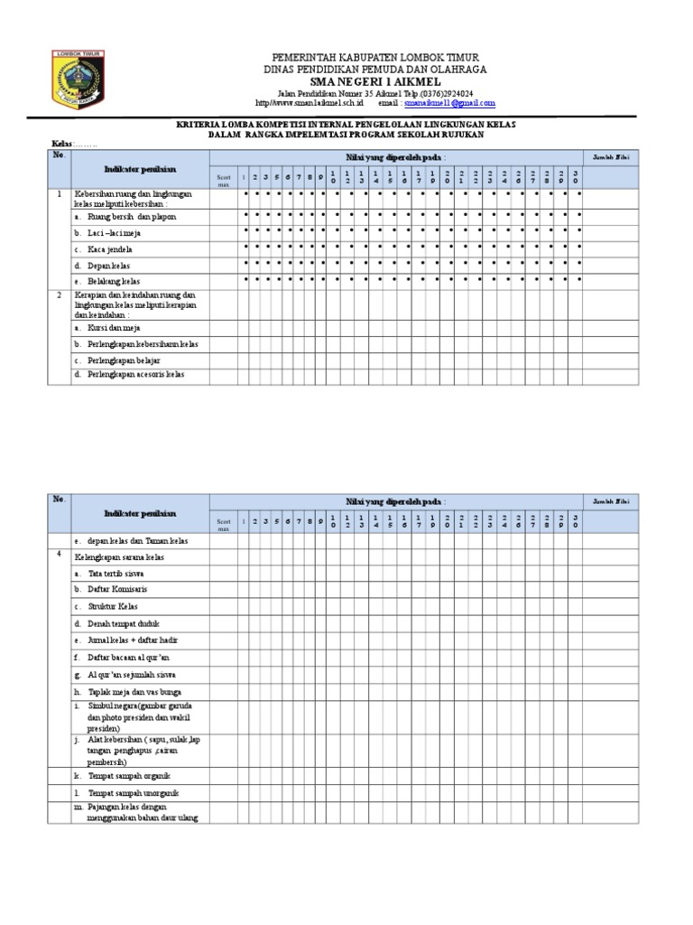 312298959 Lembar Penilaian Lomba Kebersihan Kelas Docx | Download Gambar