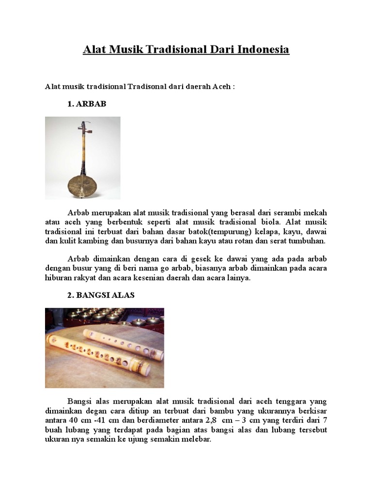Doc Alat Musik Tradisional 34 Provinsi Indonesia Dan Gambar | Download Gambar