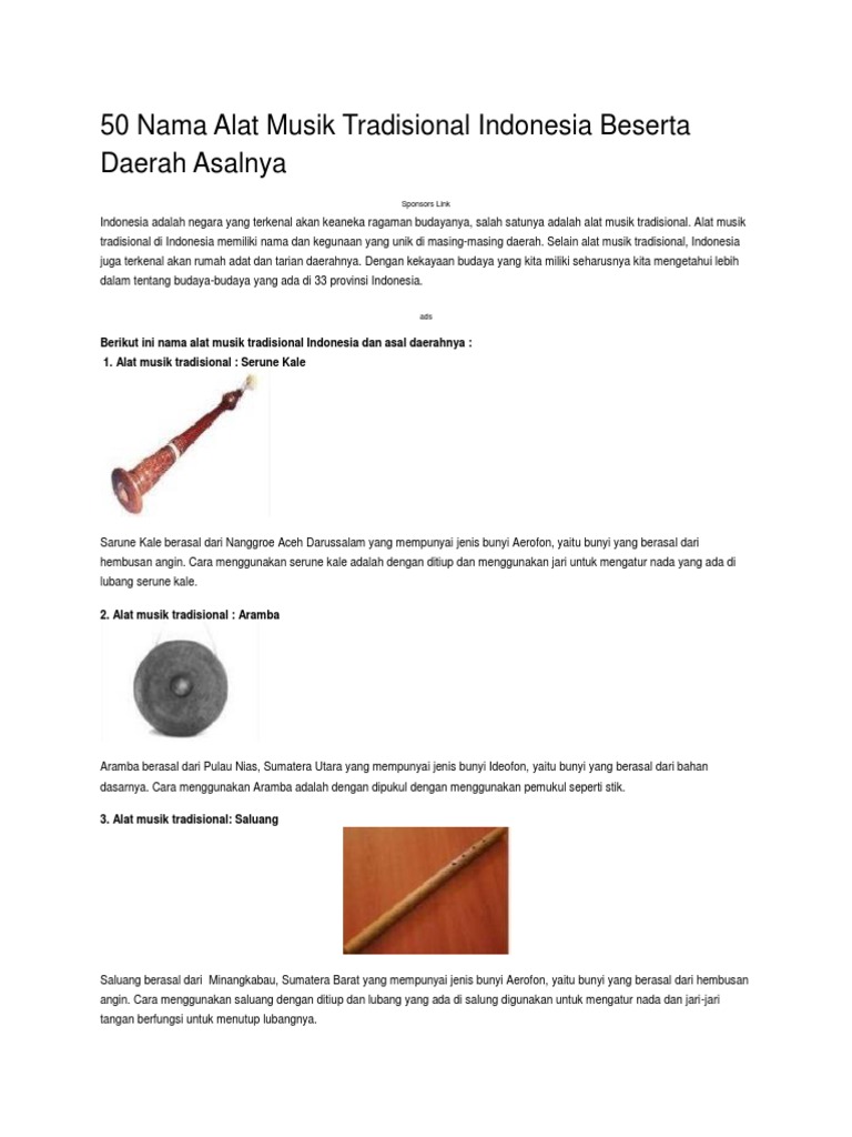 Doc Daftar Nama Nama Alat Musik Tradisional Indonesia Hiras | Download Gambar