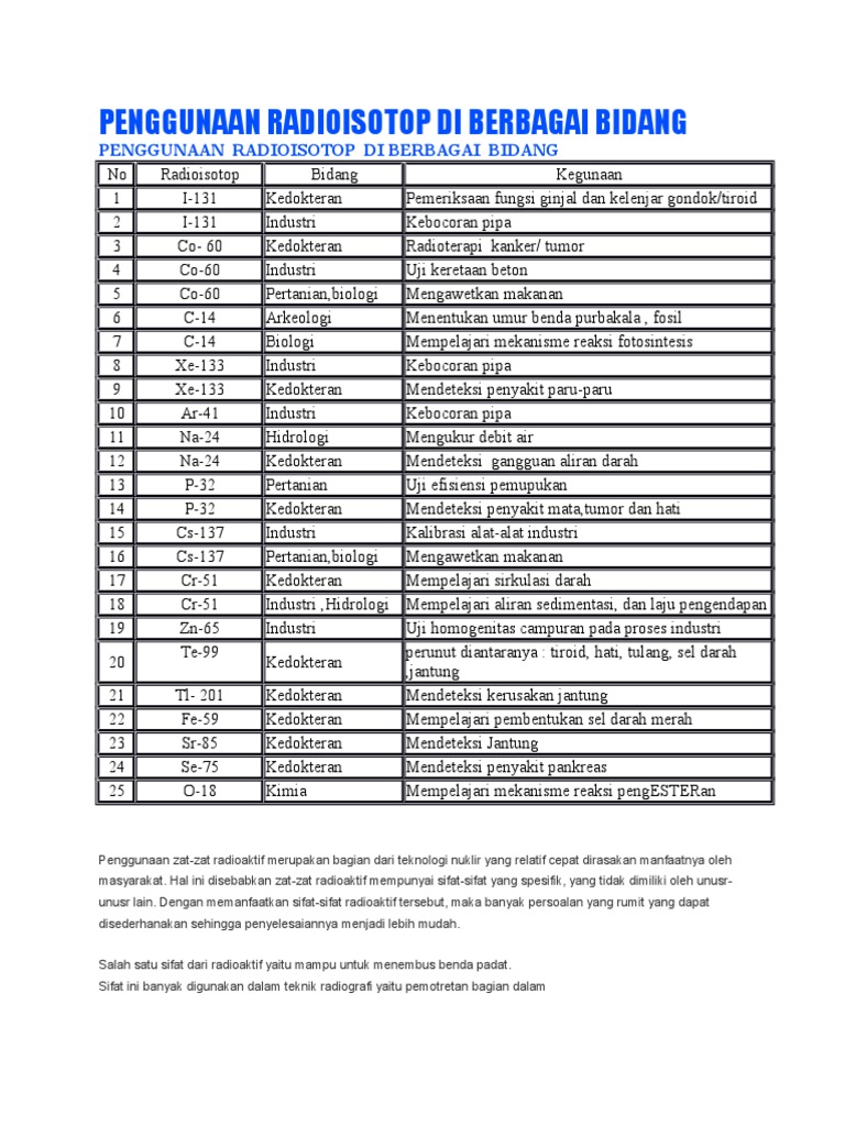 Penggunaan Radioisotop Di Berbagai Bidang Docx | Download Gambar