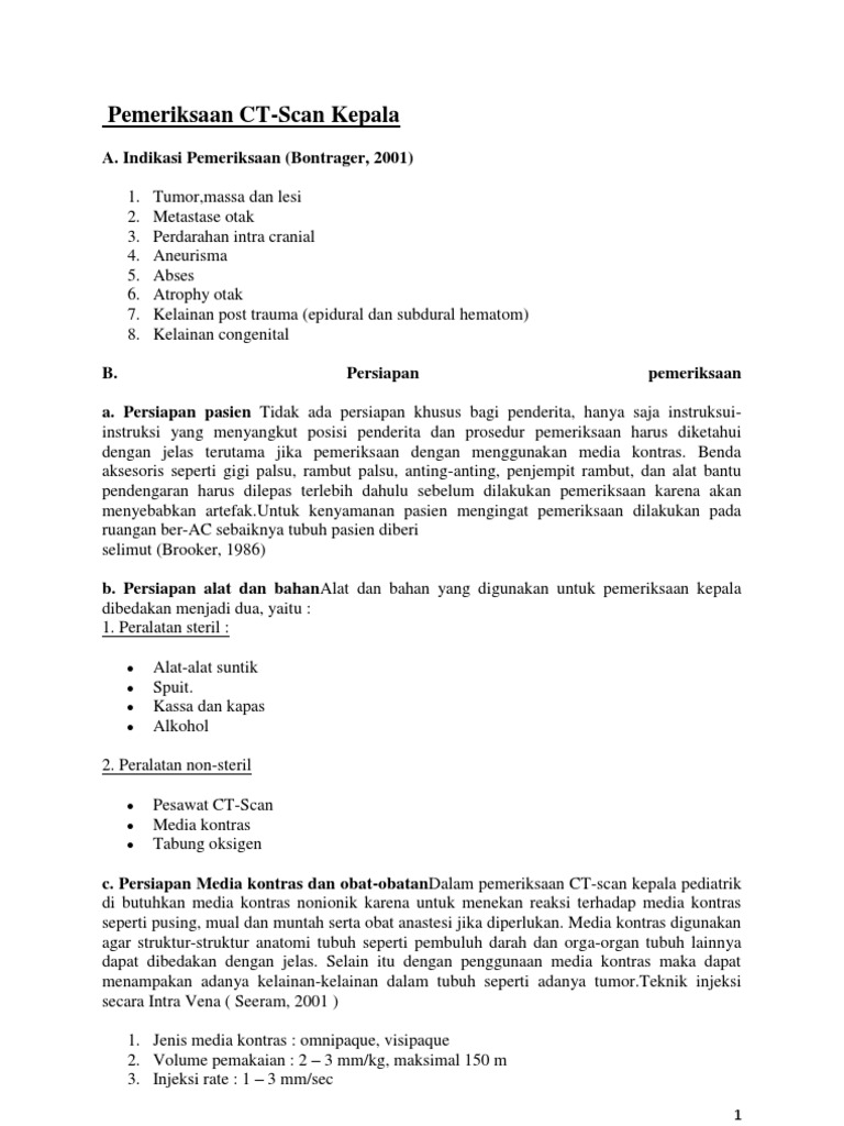 Gambar alat ct scan kepala. Kepala anda akan diposisikan di dalam scanner. Ct scan merupakan sebuah teknologi yang digunakan para medis untuk melakukan pengecekan terhadap organ yang ada didalam tubuh. Bagian kepala ini memang merupakan bagian yang penting untuk menjalankan fungsi otak. Gambar alat dan bahan pada ct scan. Hadirnya modalitas imajing ct scan telah merevolusi cara mengevaluasi diagnosa trauma kepala. Alat ini menggunakan serangkaian pemindai x ray yang kemudian diteruskan dalam kedalam komputer untuk menghasilkan gambar tulang dari jaringan lunak dalam kepala yang tidak kasat mata. Peralatan yang digunakan pada ct scan kepala diantaranya adalah alat ct scanner tube xray ruang periksa ct scan meja baring komputer peralatan untuk keadaan gawat darurat zat kontras interkom skrin pelindung radiasi dan tombol panggilan. Computed tomography scan ct scan dan magnetic resonance imaging mri. Sebelum ct scan plain foto skull umum dimintakan pada pasien kasus trauma kepala. Scanner memancarkan x ray ke kepala anda. Gambar gambar ct injector pemeliharaan scan perkembangan slices alat untuk slices ct pemeliharaan alat indonesia ct scan operasional berapa indonesia kepala fungsi distributor operasional jual medis perawatan distributor ct scan alat philips ge kso ukuran untuk slices perkembangan slice persiapan berapa bagian kerja perawatan fungsi kesehatan. Ct scan alat pemeriksaan canggih untuk pengobatan yang lebih cepat dan tepat 08 october 2018 ct scan adalah salah satu pemeriksaan penunjang yang sangat bermanfaat bagi dokter untuk menegakkan diagnosis terutama untuk melihat perdarahan patah tulang dan tumor di berbagai organ tubuh mulai dari kepala hingga tangan dan kaki. Namun nilai prediktif dan efisiensi dari skull x ray sudah mulai dipertanyakan. Ct scan untuk bagian kepala atau juga disebut pemindaian crania adalah teknologi terkini sinar x yang berfungsi untuk mengambil gambar santir dari kepala. Computed tomography ct scan menggunakan x ray untuk merontgen kepala dan wajah. Ct scan atau pemindaian tomografi terkomputasi tidak hanya terbatas untuk penggunaan pemindaian kepala. Ct scan kepala adalah tes kesehatan yang dilakukan pada bagian bagian kepala secara keseluruhan. Juga terjadi gangguan daya ingat gangguan keseimbangan dan gangguan. Mri adalah suatu alat diagnostik gambar berteknologi canggih yang. Plain foto kepala memang dapat menunjukkan adatidaknya fraktur pada kepala. Biasanya kondisi ini akan diikuti oleh. Ct scan dapat digunakan untuk mengambil gambar santir bagian tubuh manapun dan. Apa itu ct scan kepala. Tidak ada persiapan khusus untuk pemeriksaan kepala hanya saja instruksi instruksi yang menyangkut posisi penderita dan prosedur pemeriksaan harus diketahui dengan jelas terutama jika pemeriksaan dengan media kontras benda asesoris seperti gigi palsu rambut palsu anting anting.