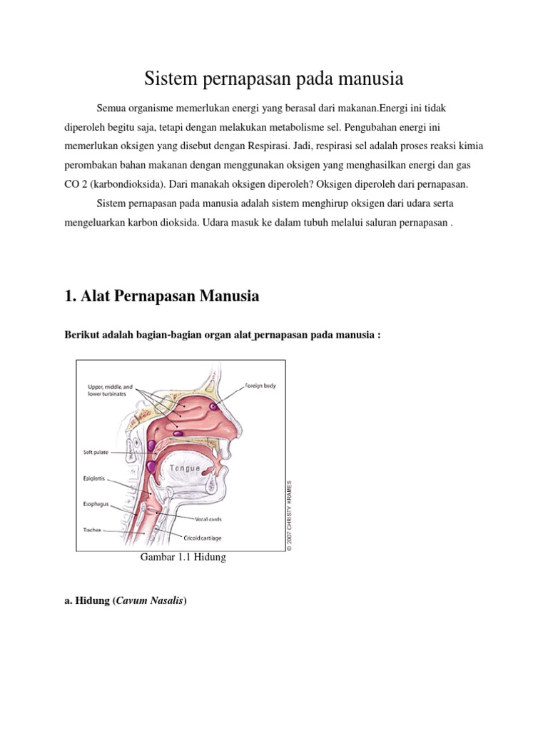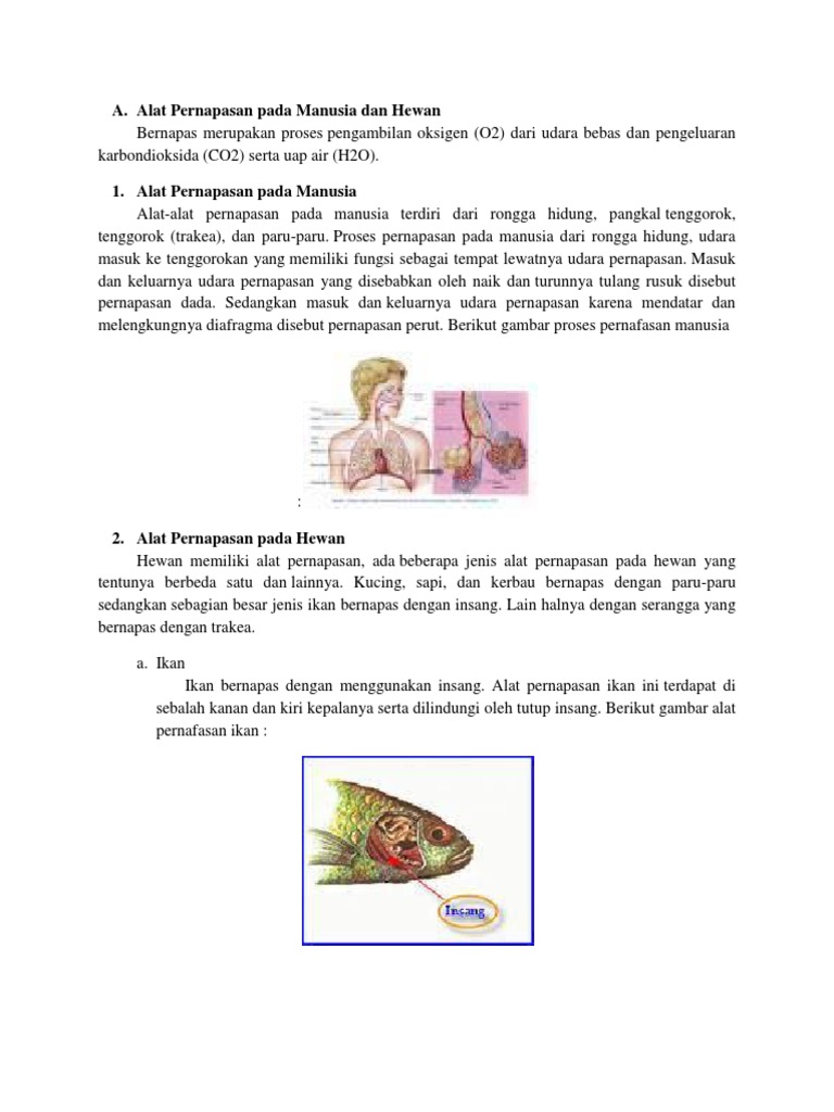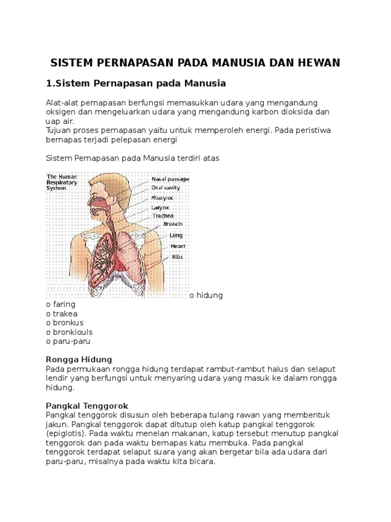Sistem Pernapasan Pada Manusia Dan Hewan Docx | Download Gambar