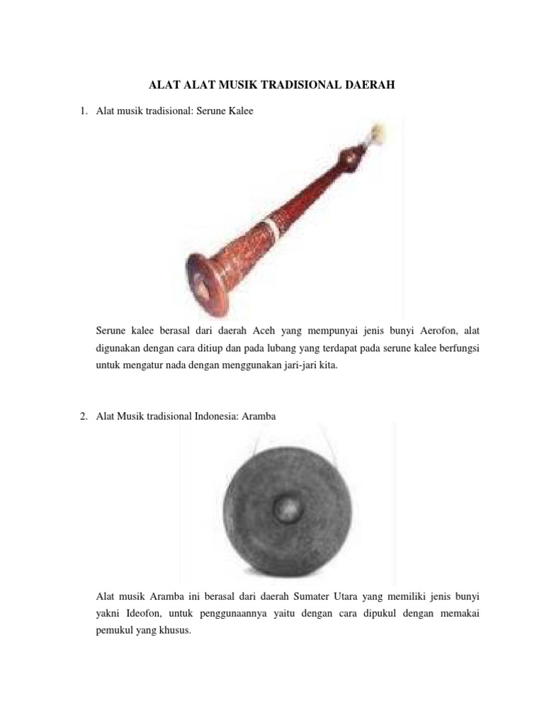 Doc Alat Musik Tradisional 34 Provinsi Indonesia Dan Gambar | Download Gambar