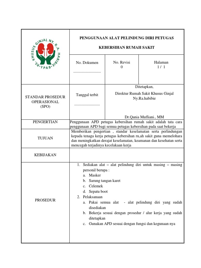 Sop Apd Petugas Kebersihan Docx | Download Gambar