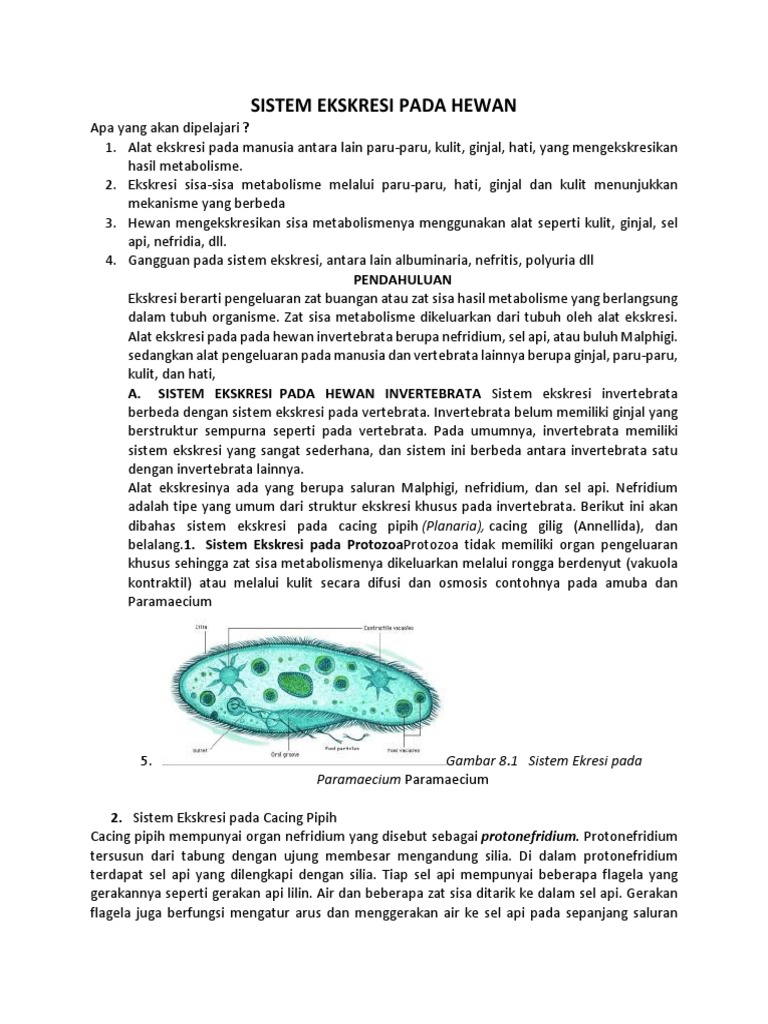 Sistem Ekskresi Pada Hewan Pendidikan Biologi | Download Gambar