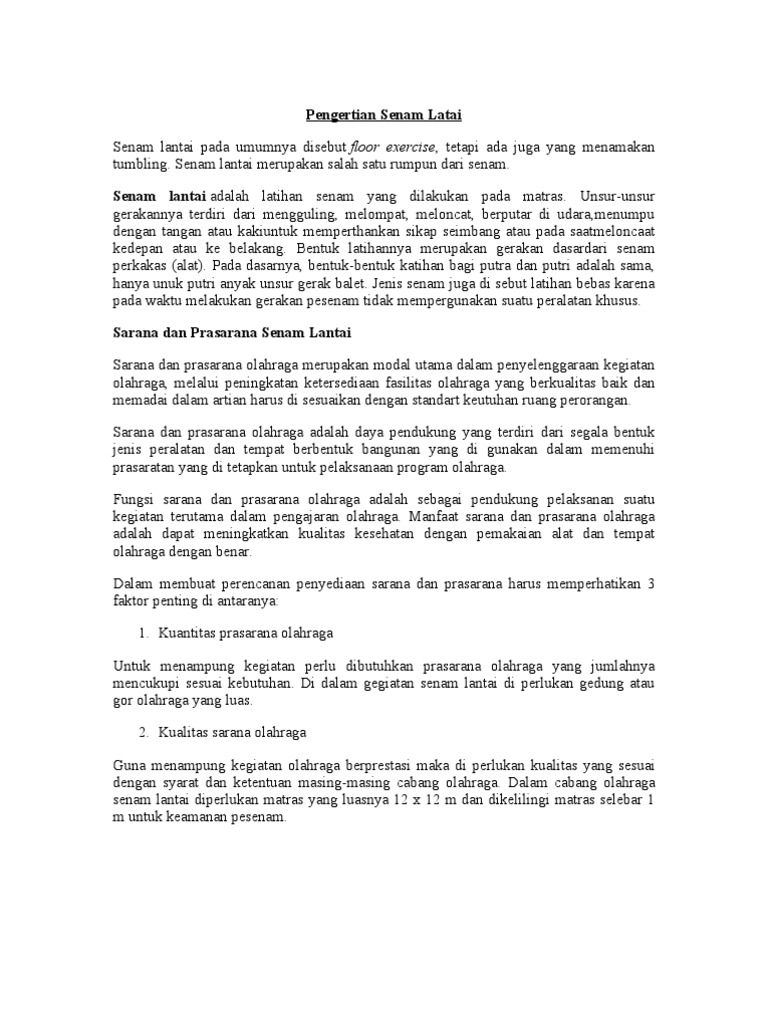 Gambar alat senam lantai dan fungsinya. Macam macam gergajipengertian gergaji kayu mesin macam macam gergaji dan fungsinya jenis jenis gergaji dan fungsinya 1. Alat tersebut berupa perkakas yang sukar dipindahkan dan alat alat ringan yang bisa dipindahkansalah satu senam yang menggunakan alat adalah senam artistik. Bentuk modern dari senam ialah. Senam lantai floor exercise adalah satu cabang olahraga senam yang cukup popular di dunia. Senam lantai flour exercise adalah satu bagian dari rumpun senam sesuai dengan denga istilah lantai maka gerakan gerakan senam yang dilakukan di atas yang beralasan matras atau permadani atau sering juga disebut dengan istilah latihan bebassebab pada waktu melakukan gerakan atau latihannya. Setiap jenisnya memiliki keunikan tersendiri. Satu satunya yang bisa dibilang sebagai alat senam lantai adalah matras yang dipasang di sekeliling arena yang fungsinya hanya untuk berjaga jaga jikalau atlet kebablasan dan jatuh diluar arena. Biasanya lantai floor yang menjadi tempat latihan senam ini berukuruan 12 x 12 meter dan kebanyakan gerakan dalam senam lantai membutuhkan matras sebagai alat bantu yang berfungsi untuk mengurangi risiko terjadinya cedera saat melakukan gerakan gerakan yang hampir semuanya bersentuhan dengan lantai. Gergaji tangan daun gergaji tangan dibuat dari semacam baja yang berkwalitas baik dan cukup kaku mengingat gerak dorong dalam menggergaji dan disamping itu mempunyai daya pegas agar tidak dapat menjadi bengkok. Palang tak seimbang balok keseimbangan senam lantai. Senam ketangkasan adalah senam yang memakai latihan fisik disusun dengan sistematis yang memiliki tujuan untuk menjaga kekuatan daya tahan koordinasi kelenturan membentuk tubuh yang ideal dan memelihara kesehatan. Hal ini tentu saja mempengaruhi bagaimana kesiapan penyelenggara untuk menyiapakan alat dan fasilitas yang dipakai dalam olahraga senam lantai itu. Alat dan fasilitas ini merupakan salah satu factor penting yang menunjang dalam olahraga senam lantai sendiri dikarenakan jika alat dan fasilitas ini tidak terpenuhi maka akan mempengaruhi bagaimana kualitas dari olahraga senam lantai tersebut. Melakukan senam ini memiliki keuntungan yang banyak sekali buat anda. Alat senam lantai dan gambar peralaran senam lantai dan gambar tugas alat senam langati slideshare uses cookies to improve functionality and performance and to provide you with relevant advertising. Untuk kesempatan kali ini kita akan sedikit membahas sedikit tentang senam lantai. Bentuk bentuk tersebut konon berkembang dari latihan yang digunakan oleh bangsa yunani kuno untuk menaiki dan menuruni seekor kuda dan pertunjukan sirkus. Ada senam aerobik senam ketangkasan senam lantai dan lain sebagainya. Alat senam ketangkasan jenisalatcom dalam materi pembelajaran olahraga ada yang namanya senam ketangkasan. Ada yang memakai alat alat senam lantai dan ada yang tanpa alat. Senam merupakan suatu cabang olahraga yang melibatkan performa gerakan yang membutuhkan kekuatan kecepatan dan keserasian gerakan fisik yang teratur. Senam lantai merupakan salah satu nomor dalam senam artistik yang tak membutuhkan alat.