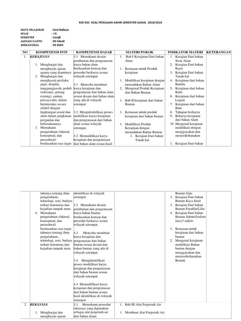 Kisi Kisi Pas Prakarya Kls 7 Dikdasmen Info Docx | Download Gambar
