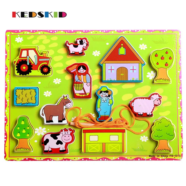 Bayi Mainan Besar Kartun Pertanian Tali Manik Manik Kayu Mainan Anak | Download Gambar