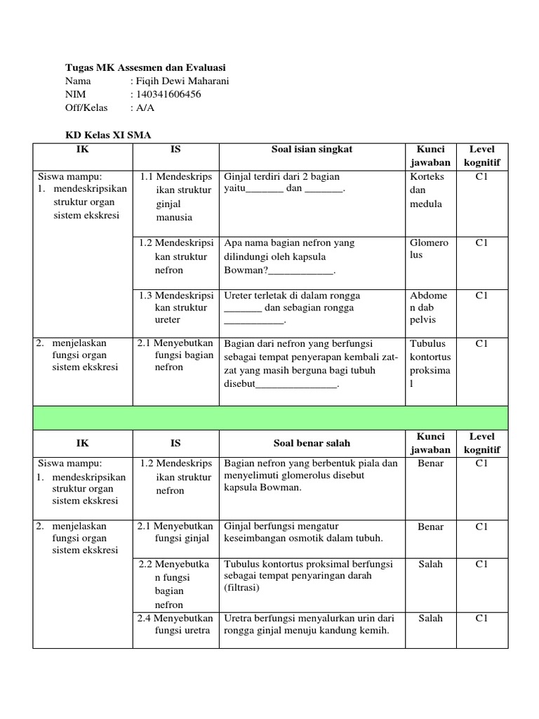Smp Kelas 9 Biologi Bab 1 Sistem Ekskresi Manusialatihan Soal Pdf | Download Gambar
