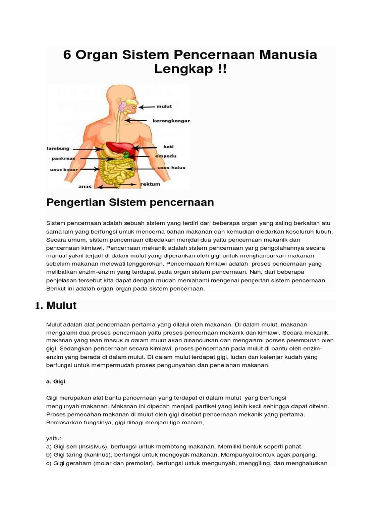6 Organ Sistem Pencernaan Manusia Lengkap Docx | Download Gambar